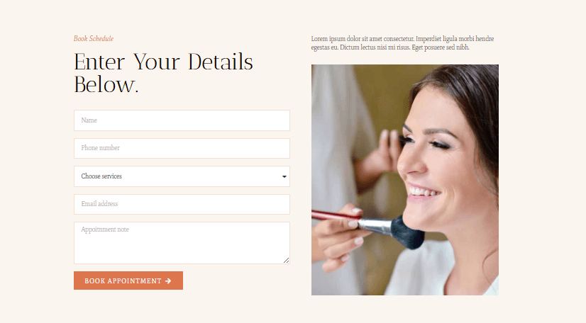 - Danh sách dịch vụ (Make-up cô dâu, Make-up dự tiệc, Chăm sóc da, Tư vấn thẩm mỹ…).