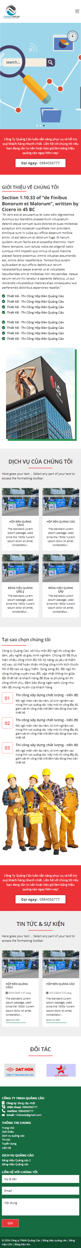 Website công ty quảng cáo chuyên nghiệp, giúp doanh nghiệp dễ dàng giới thiệu dịch vụ, trưng bày dự án và tiếp cận khách hàng tiềm năng. Với thiết kế sáng tạo, bố cục trực quan và tính năng tối ưu, website là công cụ hiệu quả để xây dựng thương hiệu và gia tăng doanh thu.